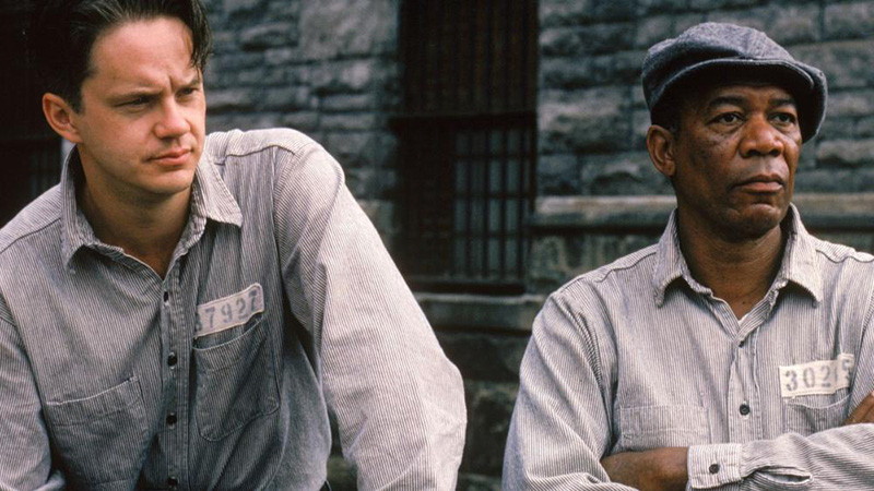 影片长达142分钟,其节奏却如同主人公的计划一样沉稳、从容。它不急于推进情节,而是用大量篇幅展现监狱生活的日常细节,让观众与角色一同感受时间的漫长与沉重。这种“慢”恰是影片力量的一部分。同时,影片构建了强大的象征系统:小石锤(毅力与智慧)、《圣经》(藏锤之处,寓意救赎与讽刺)、海报(遮盖隧道,代表希望与美对残酷现实的遮蔽)、图书馆(精神自由的象征)以及太平洋(终极自由的意象)。每一个象征都紧密服务于主题,使故事拥有了寓言般的厚度。4. 男性情谊的崇高诗篇